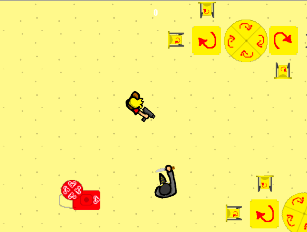 In the last week of our course, we focused more on our GameMaker studio 2 games, everyone did the basic of an arena shooter game with the teachers. And then everyone was free to customize their own games.